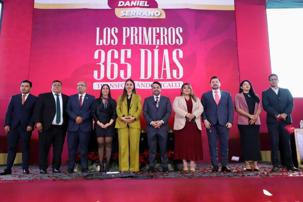 La tarde de este viernes 5 de diciembre, el presidente municipal Daniel Serrano Palacios rindió su Primer Informe de Gobierno ante miles de izcallenses reunidos en la explanada del Palacio Municipal. El acto contó con la presencia de Mónica Chávez Durán, oficial mayor y representante de la gobernadora del Estado de México Delfina Gómez Álvarez.