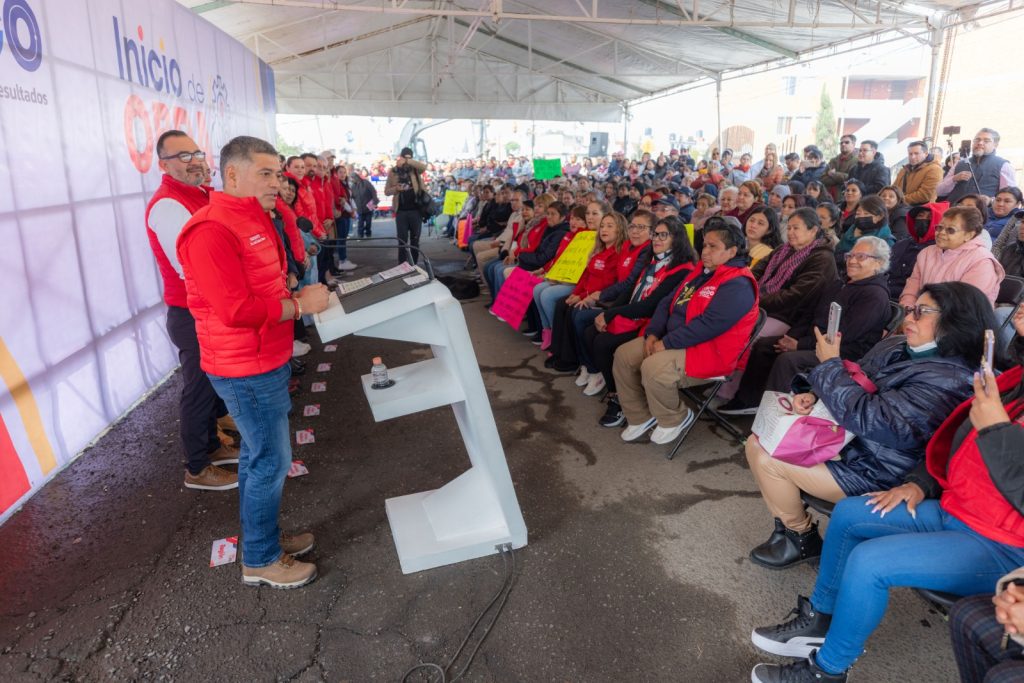 Después de iniciar los trabajos en el Eje 3, David Sánchez, acompañado por la presidenta del DIF, María de Lourdes González Ocampo; integrantes del Cabildo; servidores públicos; directores de área; y por Isabel Cardona, subdirectora de Desarrollo Regional de la Secretaría del Bienestar del Estado de México, se trasladó a las calles Corregidora de la Cabecera Municipal y Francisco I. Madero de Villa de las Manzanas, para dar inicio a los trabajos de repavimentación también con concreto hidráulico.